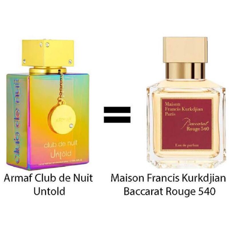 . Club De Nuit Untold by Armaf draws in the wearer with a complementary top note pairing of jasmine and saffron This contrast of dry grassy and velvety floral tones is the perfect lead-in to its heart of amberwood and ambergris, resplendent with their salty, musky, and earthy accords